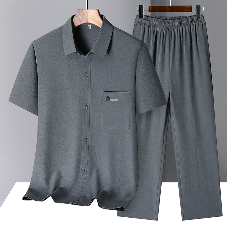 中年男士夏天短袖T恤套装冰丝透气无痕工艺领爸爸夏款商务休闲翻领体恤衫中国风中老年男士休闲T恤